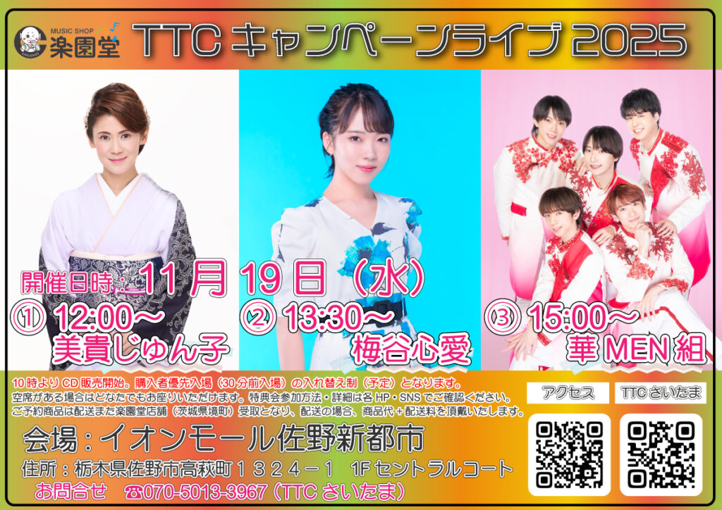 2025年11月19日(水)TTCキャンペーンライブ2025 「イオンモール佐野新都市」華MEN組出演決定!