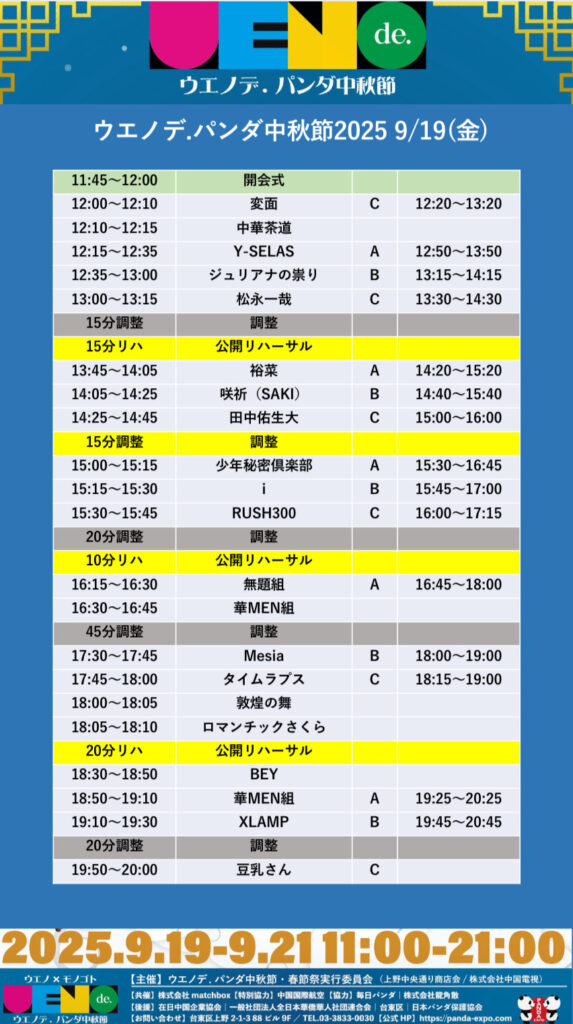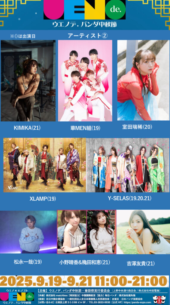 【追加情報】2025年9月19日(金)「ウエノデ.パンダ中秋節2025」華MEN組出演決定!