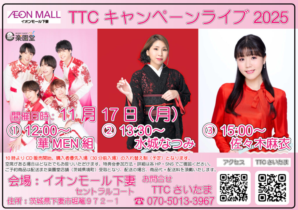 2025年11月17日(月)TTCキャンペーンライブ2025「イオンモール下妻」華MEN組出演決定!