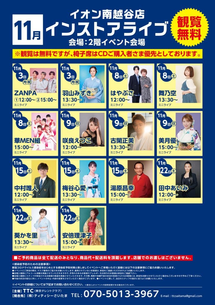 2025年11月8日(土)TTCキャンペーンライブ2025 「イオン南越谷店」華MEN組出演決定!