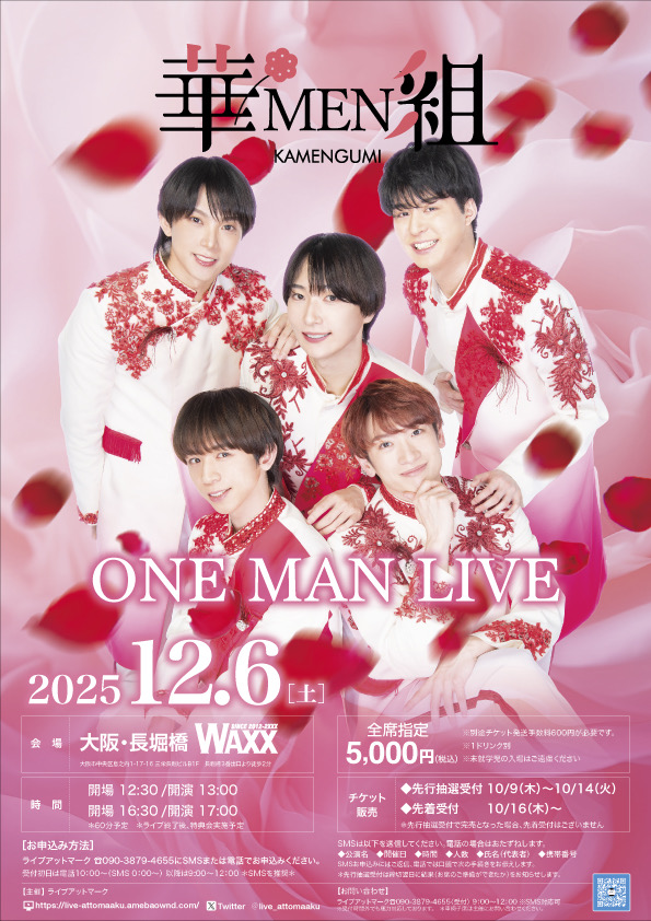 2025年12月6日(土)華MEN組「ONE MAN LIVE」(大阪)開催決定‼️