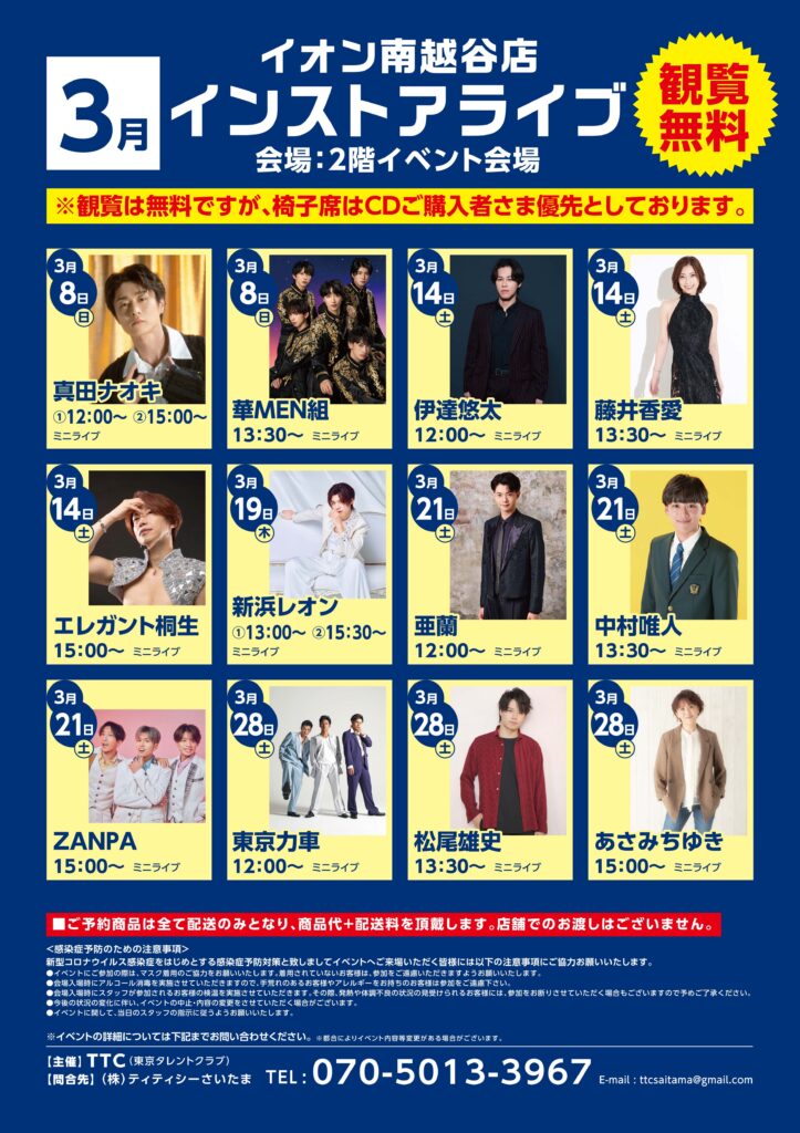 ※当日の状況により出演時間や特典内容(実施形態)を変更する場合がございます。予めご了承ください。