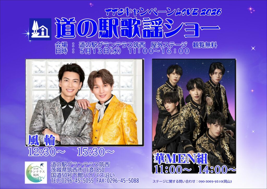 2026年5月13日(水)TTCキャンペーンライブ2026「道の駅歌謡ショー」出演決定!